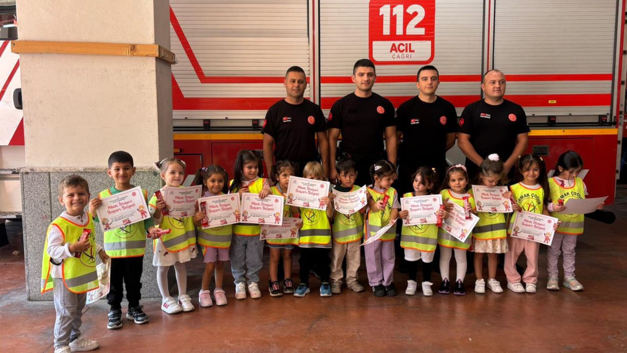 DMHA DÜZCE-Son olarak Düzce’deki iki kreşten gelen 3-6 yaş aralığındaki 70 öğrenci ve 13 öğretmen, Çoban Mevkii’ndeki İtfaiye Yerleşkesini ziyaret etti. Minikler, itfaiyecilerden yangın anında yapılması gerekenleri öğrendi, söndürme çalışmalarını ilgiyle izledi. İtfaiye araçlarına binerek keyifli anlar yaşayan çocuklara “Minik İtfaiyeci Başarı Belgesi” verildi ve çikolata ikram edildi. Ziyaret, hem öğrencilerin hem de öğretmenlerin yüzünü güldürdü, itfaiyecilerin de motivasyonunu artırdı.