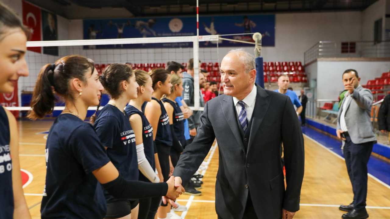 Düzce Belediye Başkanı Dr. Faruk Özlü, Düzce Belediyesi Spor Akademisi voleybol takımlarının antrenmanını ziyaret ederek sporculara moral verdi ve baklava ikram etti.
