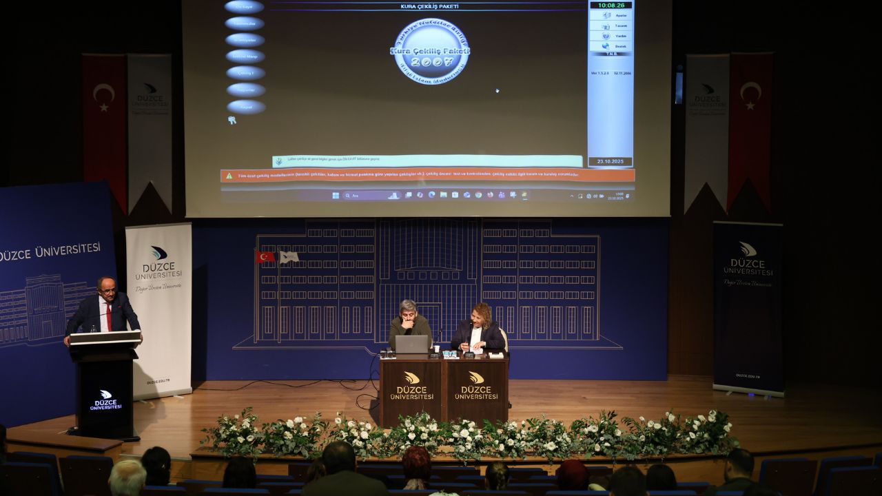 Düzce Üniversitesi ile Düzce İŞKUR İl Müdürlüğü arasında öğrencilerin mesleki deneyim kazanmalarına ve iş hayatına hazırlanmalarına katkı sağlamak amacıyla imzalanan "İŞKUR Gençlik Programı Protokolü" kapsamında düzenlenen Noter Çekilişi Cumhuriyet Konferans Salonu’nda gerçekleştirildi.