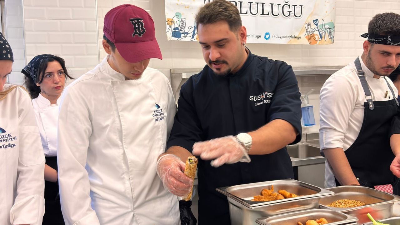 Düzce Üniversitesi Gastronomi ve Mutfak Sanatları Bölümü’nün uygulamalı eğitim vizyonuna katkı sağlayan etkinlik, öğrencilerin uluslararası mutfak kültürlerini tanıma, uygulama ve profesyonel şeflerle bire bir çalışma fırsatı bulmalarına olanak sağladı. Katılımcıların büyük bir ilgiyle takip ettiği etkinlik, öğrenciler için hem öğretici hem de ilham verici bir deneyim oldu. Programın sonunda, Düzce Üniversitesi Turizm Fakültesi Yönetimi tarafından eğitmenlere teşekkür belgeleri takdim edildi. Workshop, toplu fotoğraf çekimi ve katılımcıların değerlendirme paylaşımlarıyla son buldu.