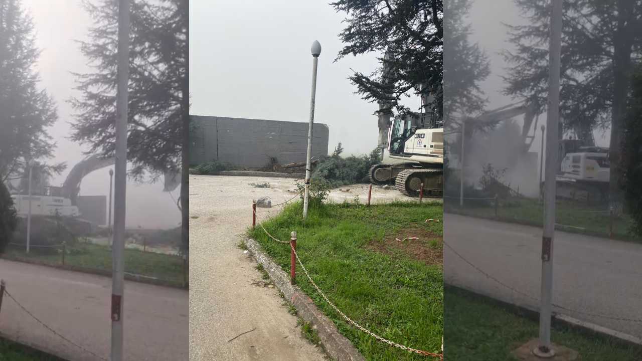 Düzce’de stadyum çevresinde yürütülen çevre sur duvarı yıkım çalışmaları sırasında, duvar etrafındaki çam ağaçları zarar gördü.
