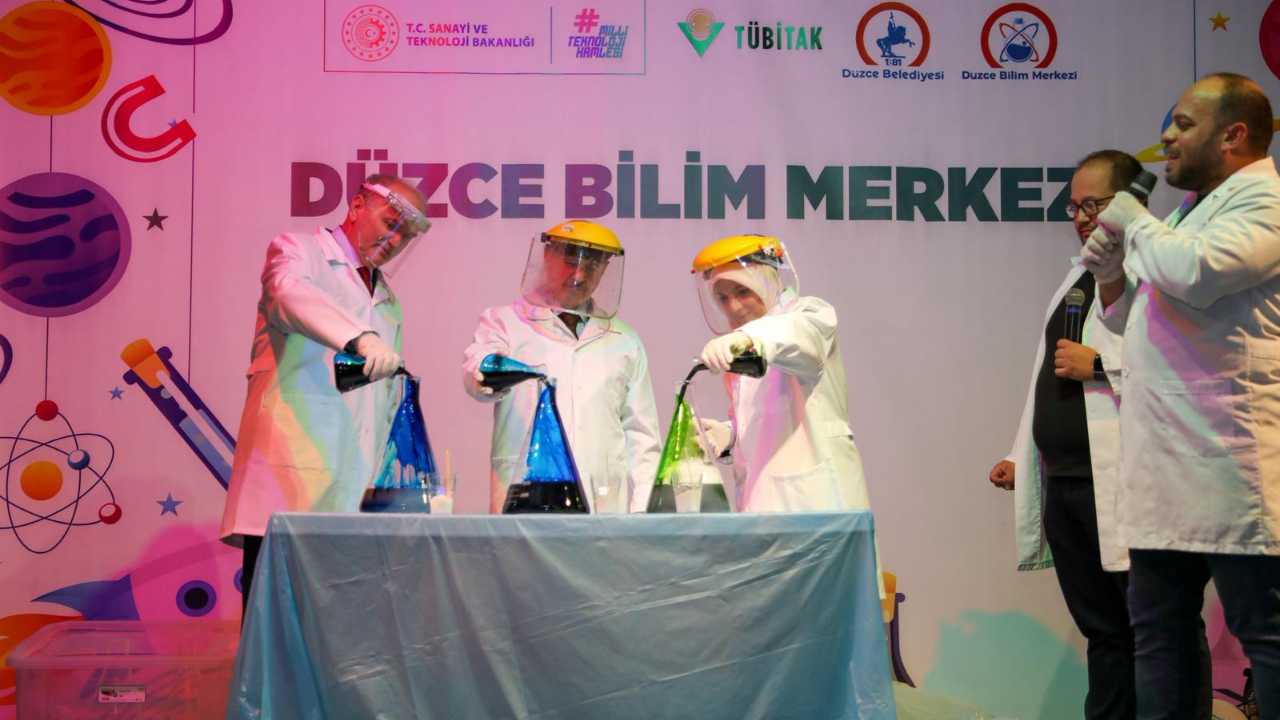 Kocaeli Bilim Merkezi’nden gelen eğitmenler Emre Yıldız ve Seracettin Karaosmanoğlu, sahneledikleri bilim gösterisiyle öğrencilerden büyük ilgi gördü. Çocuklar deneyleri heyecanla takip ederken, merkezdeki “Ufkun Ötesinde” sergisini gezme ve Düzceli mucit Hasan Kum’un icatlarını yakından inceleme fırsatı buldu. Bilim ve teknolojinin eğlenceli yöntemlerle keşfedildiği şenlik, atölyeler, bilim gösterileri ve söyleşilerle katılımcılara yenilikçi projeler geliştirme ve farklı bilim dallarında deneyim kazanma imkânı sunuyor. Etkinlik, geleceğin bilim insanlarına ilham vermeyi hedefliyor.